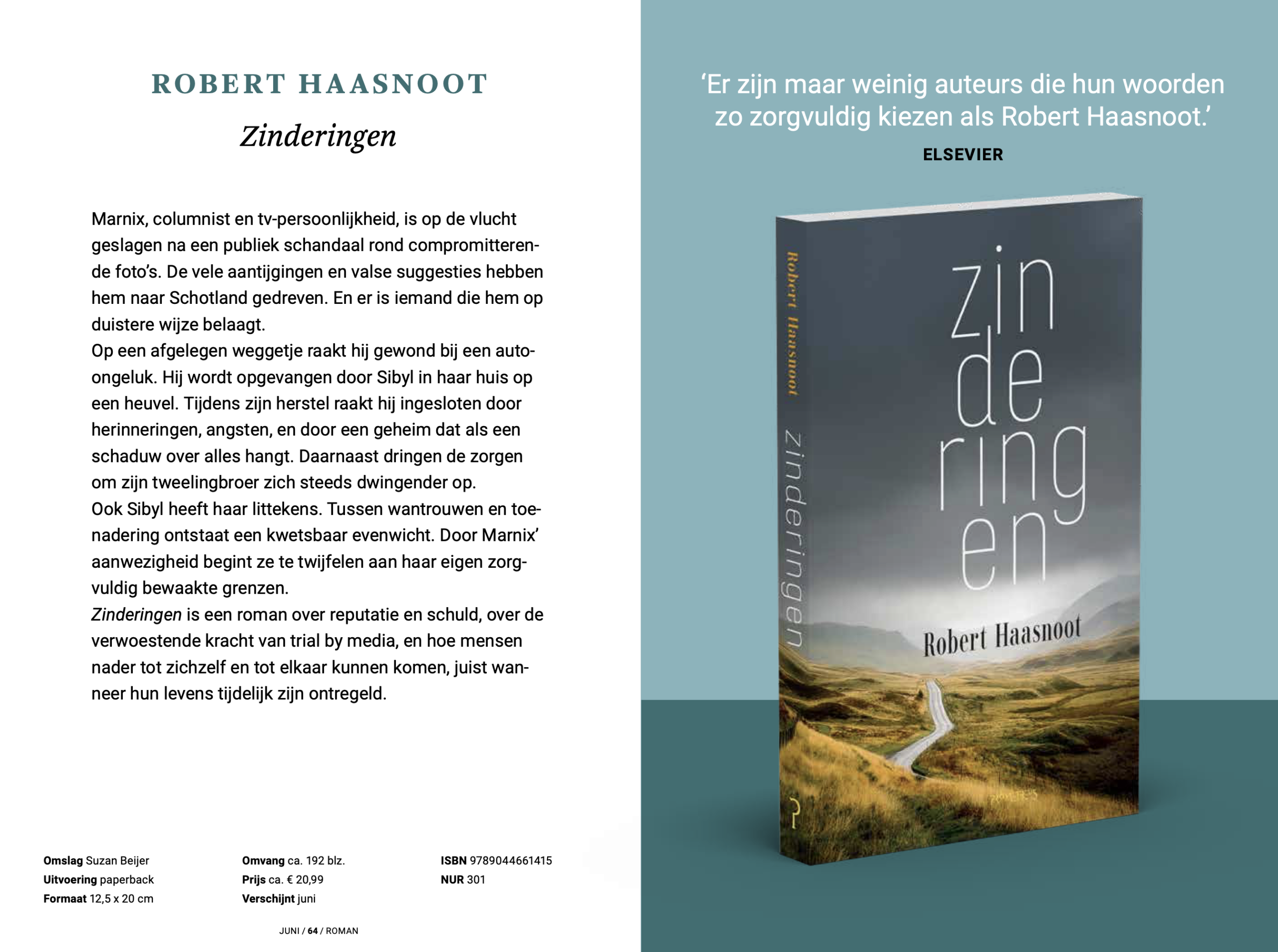 Robert Haasnoot (1961; Verenigde Staten) maakte naam met zijn romans over het vissersdorp Zeewijk: Waanzee, Steenkind en De heugling, waarvoor hij in binnen- en buitenland lovende kritieken kreeg. Waanzee leverde hem de Prix des Ambassadeurs op en De heugling stond op de longlist van de Libris Literatuurprijs. In juni 2020 verscheen zijn negende roman, Duinbrand.